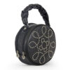 bolso en cuero con denim herrajes cromados manija mediana y riata para llevar manos libres