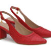 Zapatilla destalonada roja, su acabado en cuero texturizado aporta un aire moderno. Puntera fina, con correa ajustable que estilizan el pie y tacon ancho con plantilla acolchada para mayor confort. Hecho por manos colombianas. |
