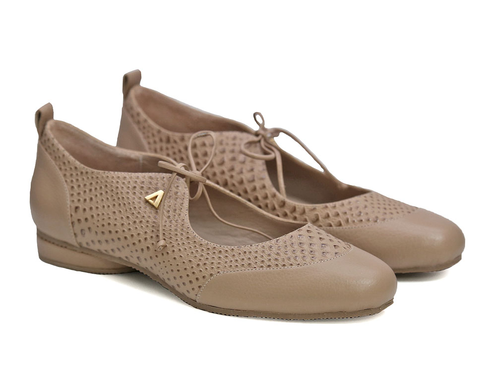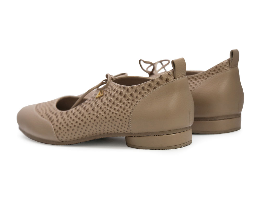Bailarinas están elaboradas en cuero grabado, ofreciendo un diseño moderno y versátil que combina confort y estilo. Su acabado en tono neutro aporta elegancia y facilidad para combinar con diferentes atuendos. Cordón ajustable en la parte superior para mejor sujeción.