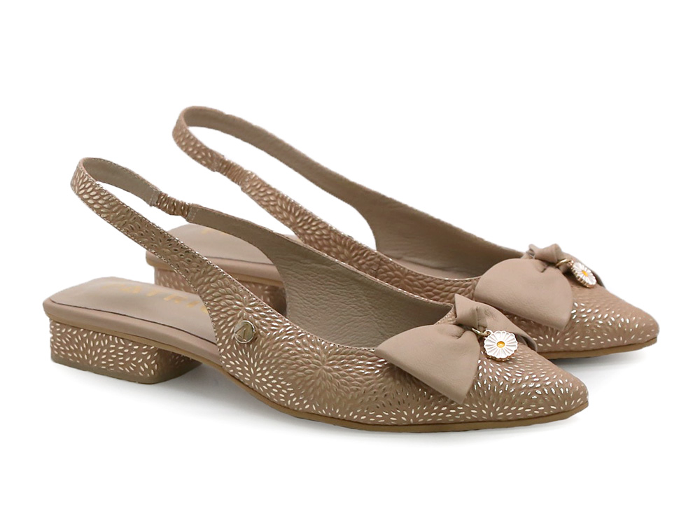 Bailarinas están elaboradas en cuero grabado, ofreciendo un diseño moderno y versátil que combina confort y estilo. Su acabado en tono neutro aporta elegancia y facilidad para combinar con diferentes atuendos. Cordón ajustable en la parte superior para mejor sujeción.