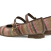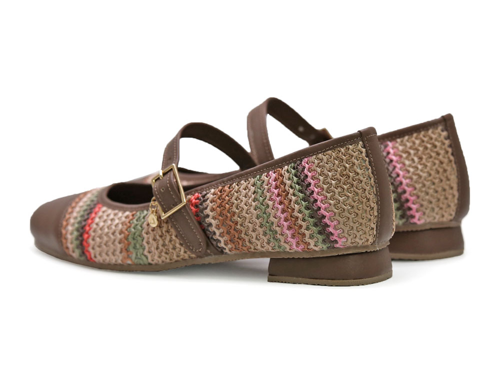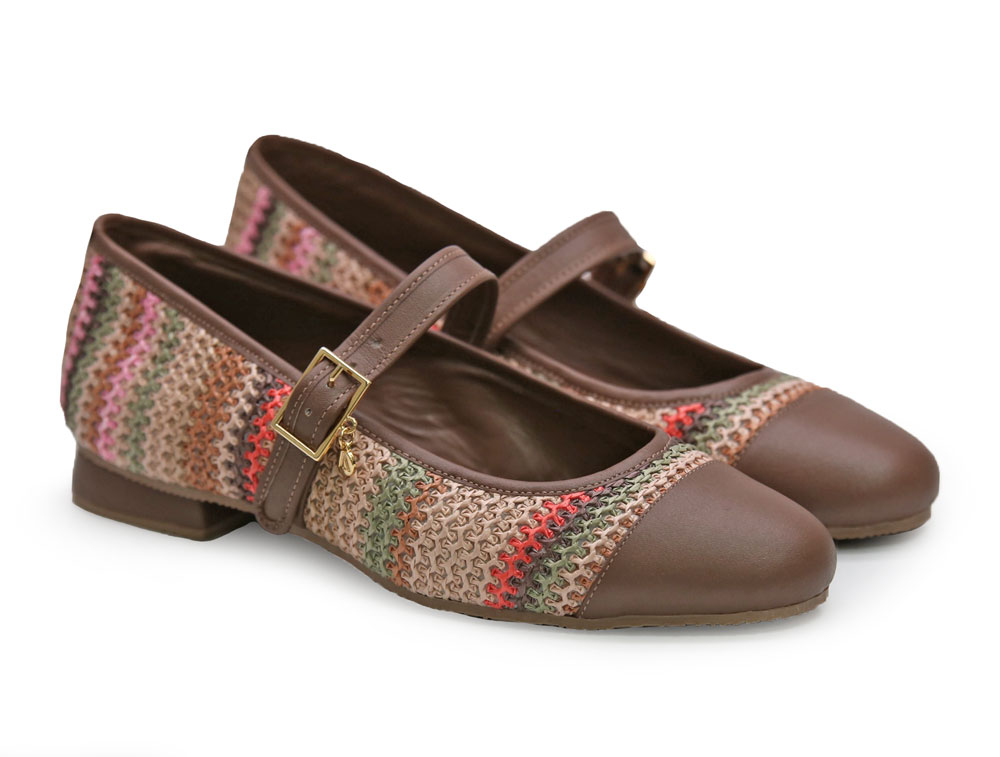 Baleta elaborada en fibra textil y cuero, con un diseño elegante y comodo. Su estructura presenta un tejido artesanal  que aporta frescura, un look moderno con colores que resaltan su estilo único. Su correa con hebilla aporta un toque delicado y mayor ajuste al pie.