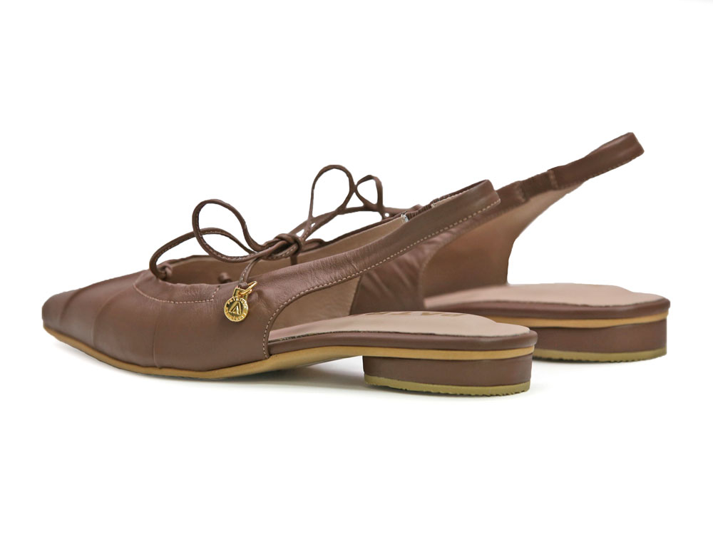 Baleta cafe, elaborada en cuero que aporta confort y resistencia. Su diseño de punta fina estiliza el pie, mientras la correa elástica trasera brinda un ajuste cómodo y práctico. Incorpora delicadas costuras frontales que realzan su estilo femenino y sofisticado. Ideal para el día a día o para complementar looks más formales, combinando comodidad, y versatilidad. Elaborados por manos Colombianas. |