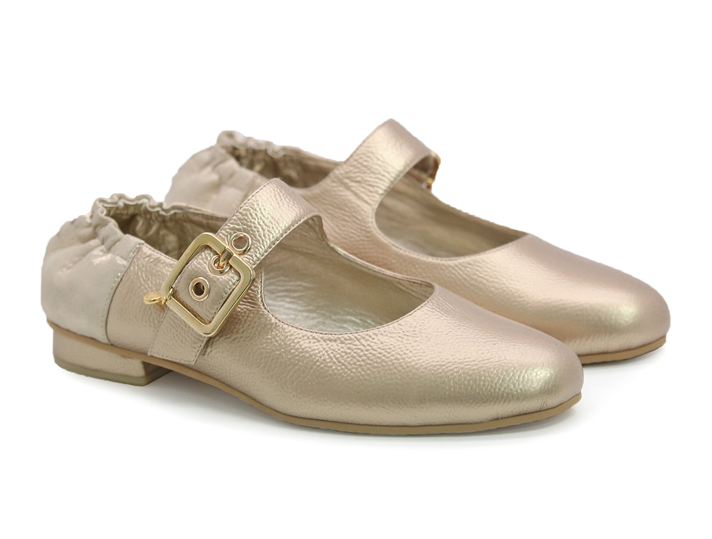 Baleta en cuero diseñadas para brindar sofisticación y versatilidad. Elástico en la parte trasera para un calce seguro, junto con su correa ajustable. Su acabado en tono dorado añaden un toque de glamour a tu estilo. Elaborados por manos Colombianas. |