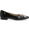 Baleta negra en cuero charol. Posee forro interno, plantilla en cuero y un accesorio en su parte frontal. Estas baletas son perfectas para combinar con tus outfits más casuales del dia a dia. 100% hecho a mano. |