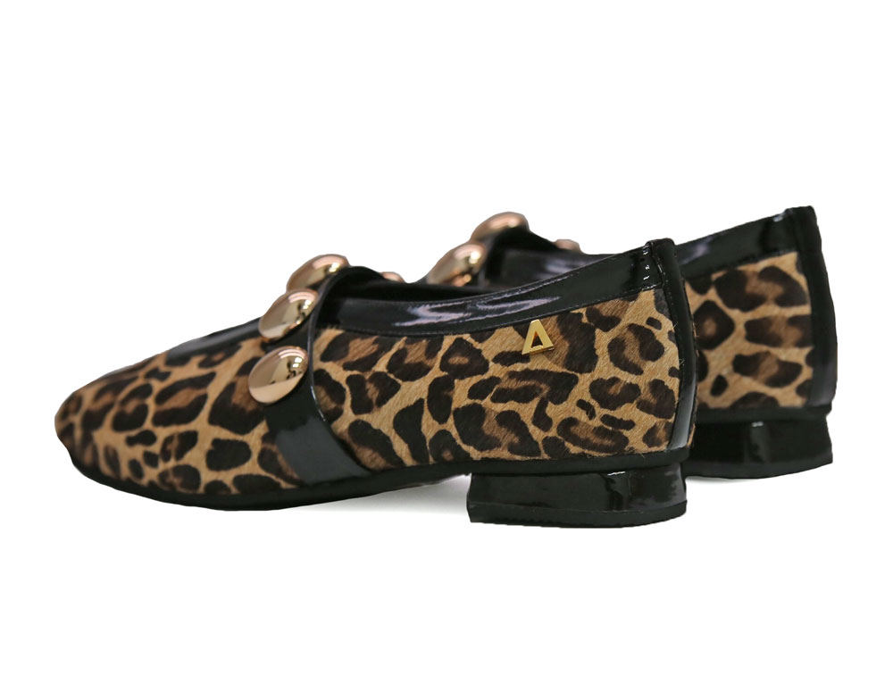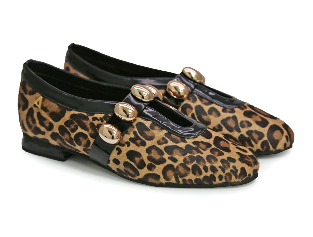Baleta elaboradas en cuero natural con detalles en charol. Su diseño combina elegancia y comodidad, ideal para uso diario o eventos casuales. La tira con botones  metálicos aporta un aire sofisticado y original.