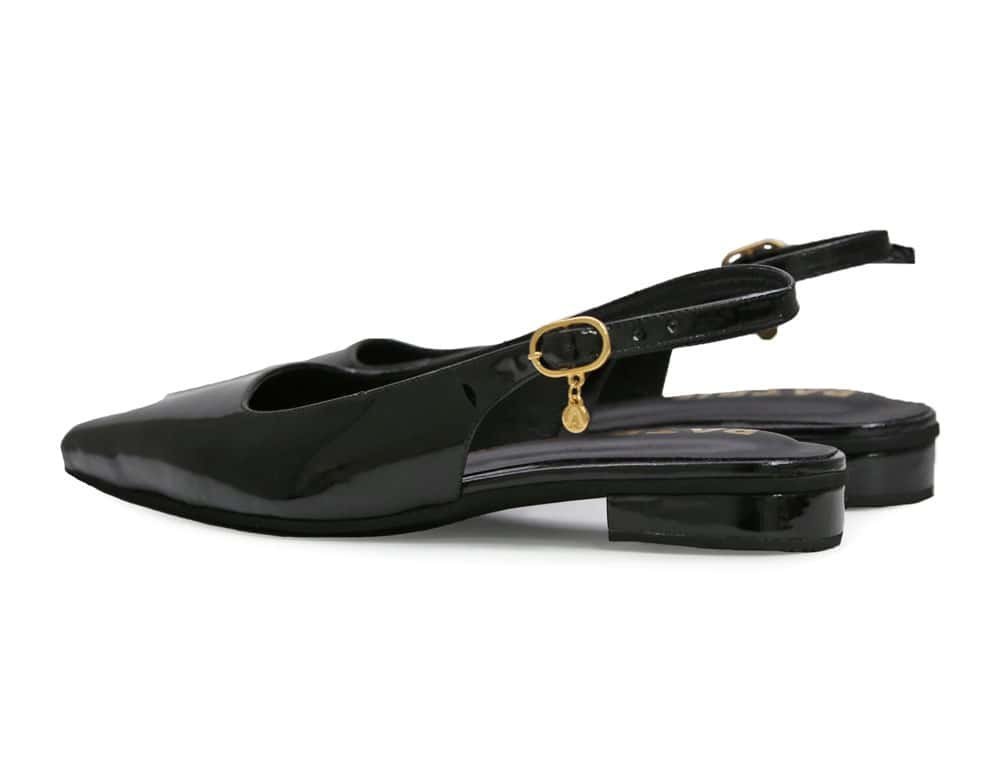 Baleta destalonada en cuero charolado color negro. Su diseño de punta cerrada estiliza el pie, convirtiendola en una opcion de uso diario , oficina o eventos combinando a la perfección comodidad y estilo. Posee correa ajustable, y plantilla acolchada para mayor confort. Elaborados por manos Colombianas. |