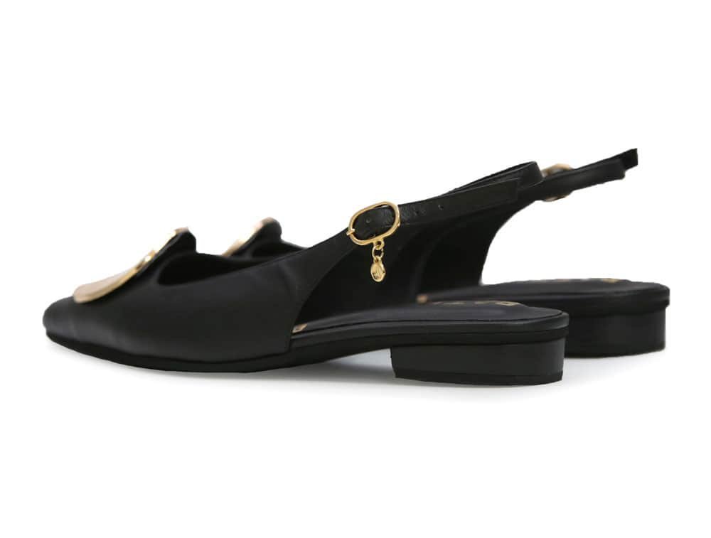 Baleta destalonada en cuero liso color negro, de diseño sofisticado y femenino. Su silueta estilizada con punta fina y detalle metálico en la capellada le aporta un toque de distinción y lujo. Ideal para mujeres que buscan elegancia, comodidad y versatilidad en un solo calzado. Elaborados por manos Colombianas. |
