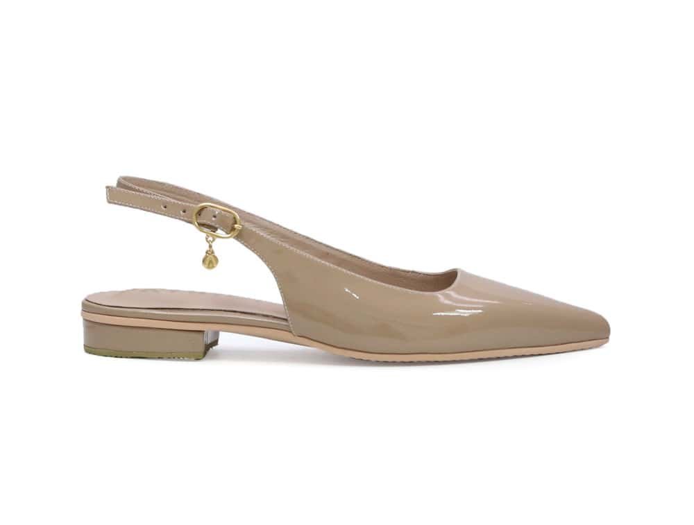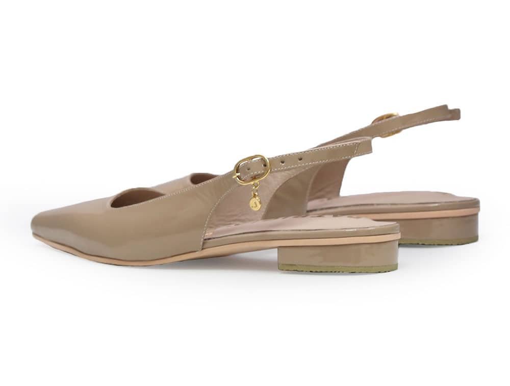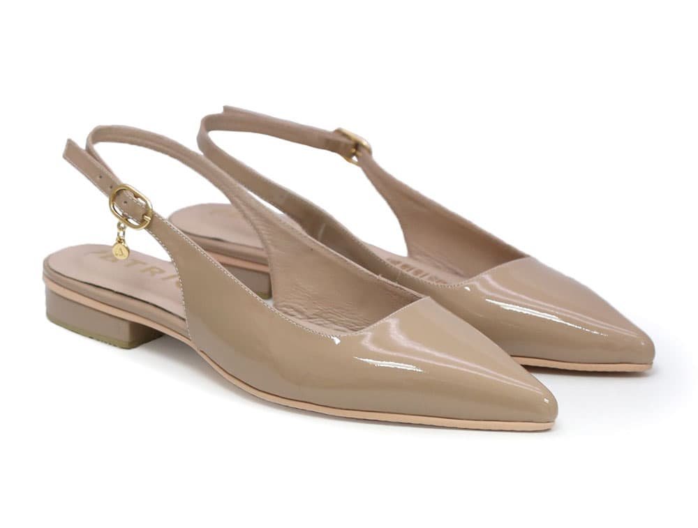 Baleta destalonada en cuero charolado color nude. Su diseño de punta cerrada estiliza el pie, convirtiendola en una opcion de uso diario , oficina o eventos combinando a la perfección comodidad y estilo. Posee correa ajustable, y plantilla acolchada para mayor confort. Elaborados por manos Colombianas. |