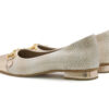 Baleta fabricada en cuero grabado con acabado en folia oro. Posee un tacón cuadrado de 1.5cm de alto, y un lindo accesorio cromado en su parte frontal. Estas baletas son tu mejor aliado para destacar con elegancia y comodidad para el dia a dia. Hecho 100% a mano. |