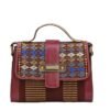 Bolso en cuero, de LIMON PIEL, su diseño artesanal combina textiles tradicionales con acabados modernos. Su parte central presenta un patrón geométrico con colores vivos como azul, blanco, dorado y marrón. Las Asas largas en tono dorado que aportan un contraste sofisticado. Hecho 100% por manos colmbianas. |