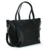 Bolso en cuero grabado con cierre herrajes cromados manija mediana y riata para llevar manos libres