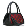 Bolso artesanal elaborado en cuero, que combina tradición y diseño contemporáneo. Su frente destaca por un tejido artesanal geométrico en tonos rojos y negros, cuidadosamente trabajado a mano, que aporta carácter, identidad y un estilo único a cada pieza.