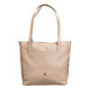 Bolso elaborado en cuero en tono nude que aporta elegancia y versatilidad. Su diseño minimalista incorpora un bolsillo frontal externo de gran utilidad.  Cuenta con asas dobles largas que permiten llevarlo cómodamente al hombro o en la mano.