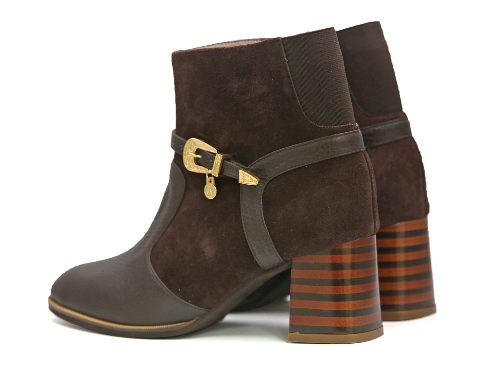 Botin cafe, confeccionado en una combinación de cuero liso en la parte frontal, carnaza en la parte del talón y el tobillo, lo que le aporta un contraste sofisticado y atractivo. Luce una hebilla dorada y un pequeño colgante decorativo, lo que le aporta un aire distintivo y chic. Perfecto tanto para looks casuales y formales Elaborados por manos Colombianas. |