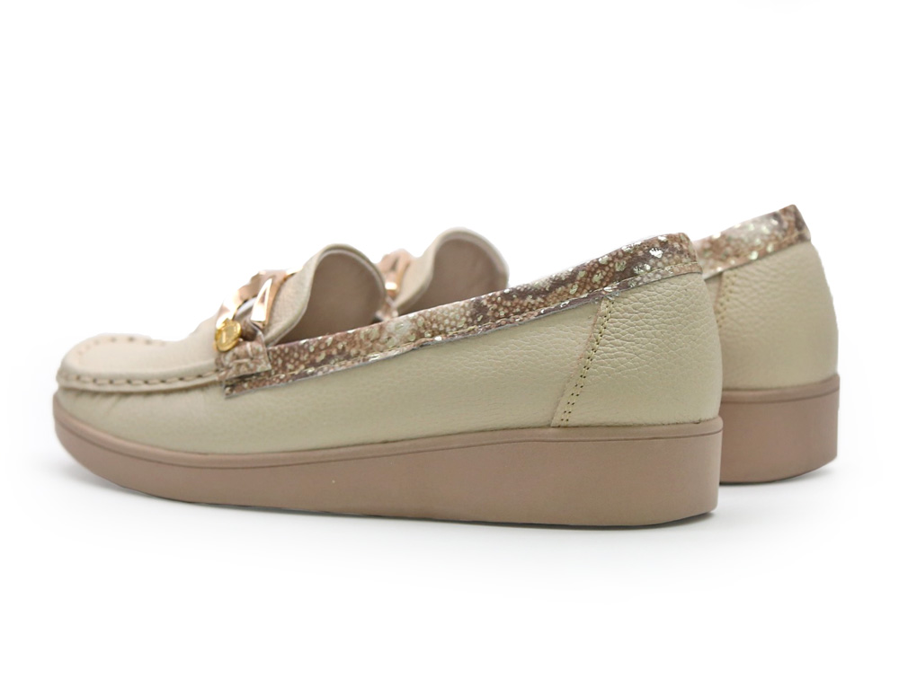 Mocasin en cuero tacon playa con acabado en folia a los bordes. Ideales para quienes buscan comodidad sin renunciar al estilo. Su diseño clásico, aporta un toque sofisticado y moderno. |