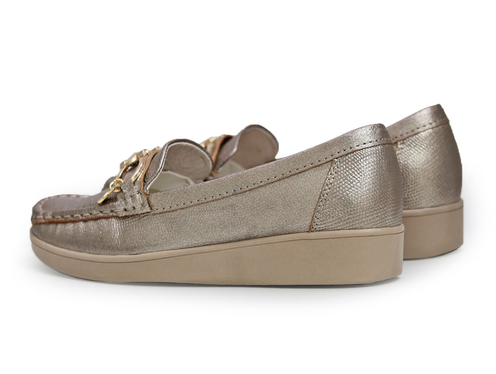 Mocasín en cuero dorado. Diseño clasico con su tacon playa que ofrece mayor comodidad. Están diseñados para quienes buscan una combinación perfecta de estilo, confort y resistencia. suela liviana y flexible. Elaborados por manos Colombianas. |