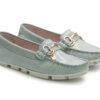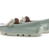 Mocasín verde menta, con diseño en folia charol. El adorno dorado en la parte superior añade sofisticación, y su suela de goma garantiza flexibilidad, agarre y confort durante todo el día. Elaborados por manos Colombianas. |