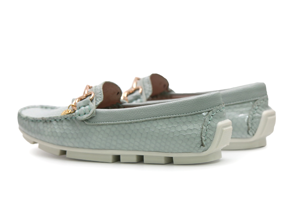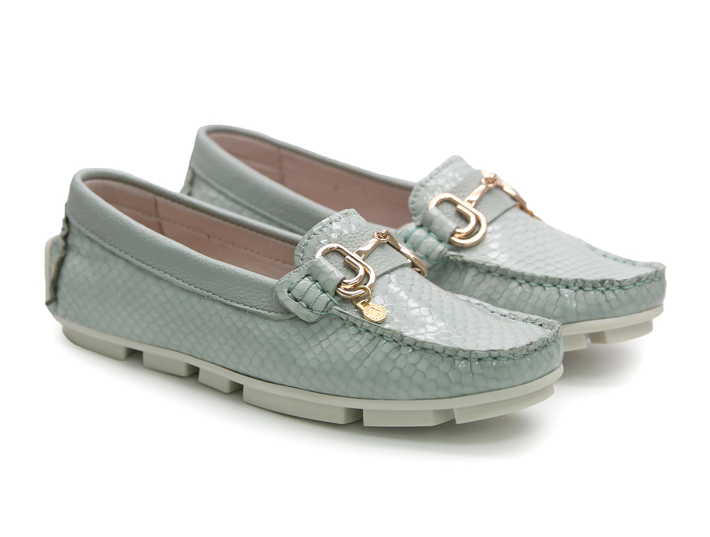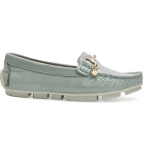Mocasín verde menta, con diseño en folia charol. El adorno dorado en la parte superior añade sofisticación, y su suela de goma garantiza flexibilidad, agarre y confort durante todo el día. Elaborados por manos Colombianas. |