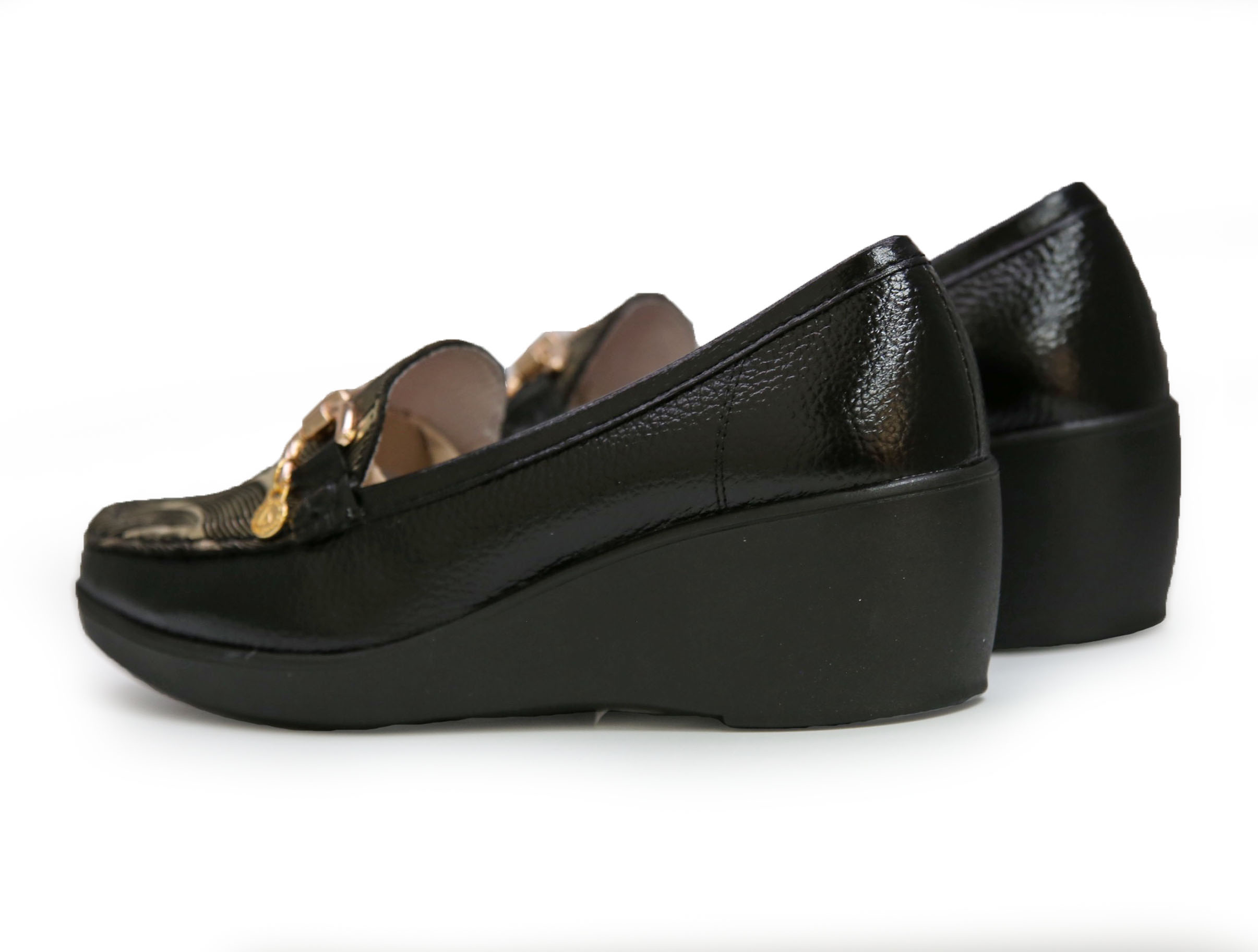 Mocasín en cuero, en tono negro, con acabado en folia. Diseño clasico con su tacon playa que ofrece mayor comodidad. Están diseñados para quienes buscan una combinación perfecta de estilo, confort y resistencia. suela liviana y flexible. Elaborados por manos Colombianas. |