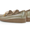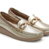 Mocasin en cuero tacon playa con acabado metalizado oro. Ideales para quienes buscan comodidad sin renunciar al estilo. Su diseño clásico, aporta un toque sofisticado y moderno. |