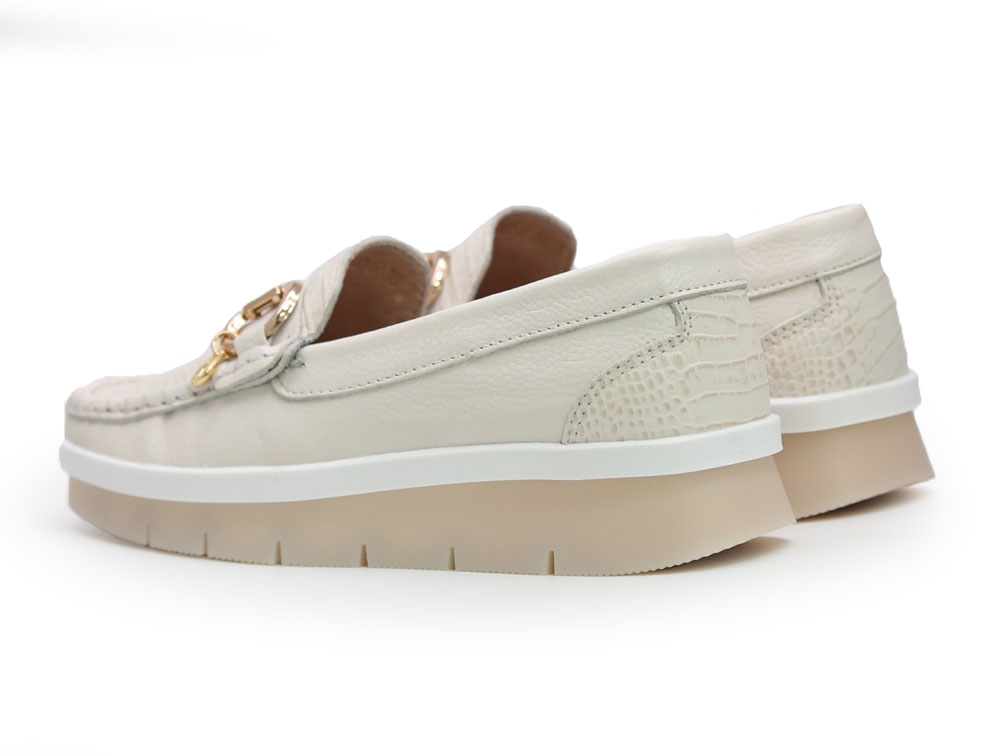 Mocasín en cuero con acabado en folia y accesorio en su parte frontal. La suela de goma bicolor (blanca y beige) es ligera, flexible y antideslizante, brindando confort y seguridad al caminar Perfectos para el uso diario, la oficina o salidas informales. Elaborados por manos Colombianas. |