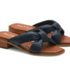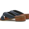 Sandalia destalonada en cuero de confeccion. Su lazo cruzado aporta un toque de estilo único, mientras que el tacón forrado en vira, le da un aire natural y elegante. Hechas por manos colombianas |