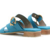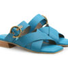 Sandalia en cuero azul,cuenta con un diseño único de tiras cruzadas en capellada, y hebilla dorada para mayor comodidad y ajuste. posee un tacón de altura de 2.5cm. Esta sandalia ofrece un toque elegante y sutíl, perfecta para tu días casuales. |