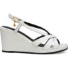 Estas sandalias están elaboradas en cuero blanco. Su diseño tipo plataforma con tacón corrido es ideal para quienes buscan altura sin sacrificar comodidad. Las tiras cruzadas al frente proporcionan un ajuste firme y elegante. |
