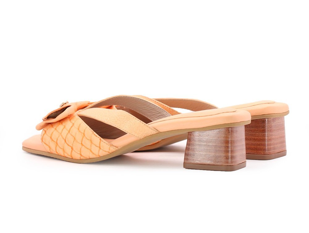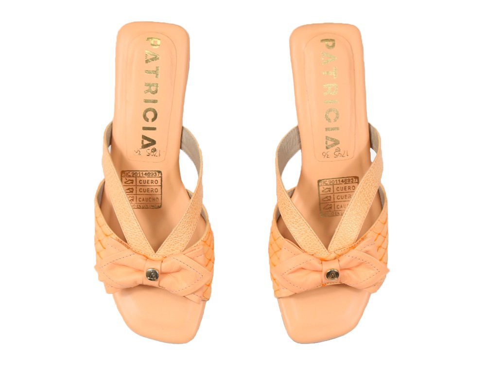 Sandalia en cuero con textura grabada en folia, cuenta con un diseño único coquett en capellada, para mayor comodidad posee un tacón de 3.5cm hecho en madera. Esta sandalia ofrece un toque de altura sutíl,perfecta para tu días casuales. Elaboradas por manos Colombianas. |