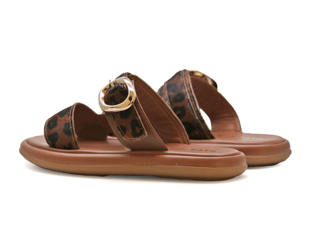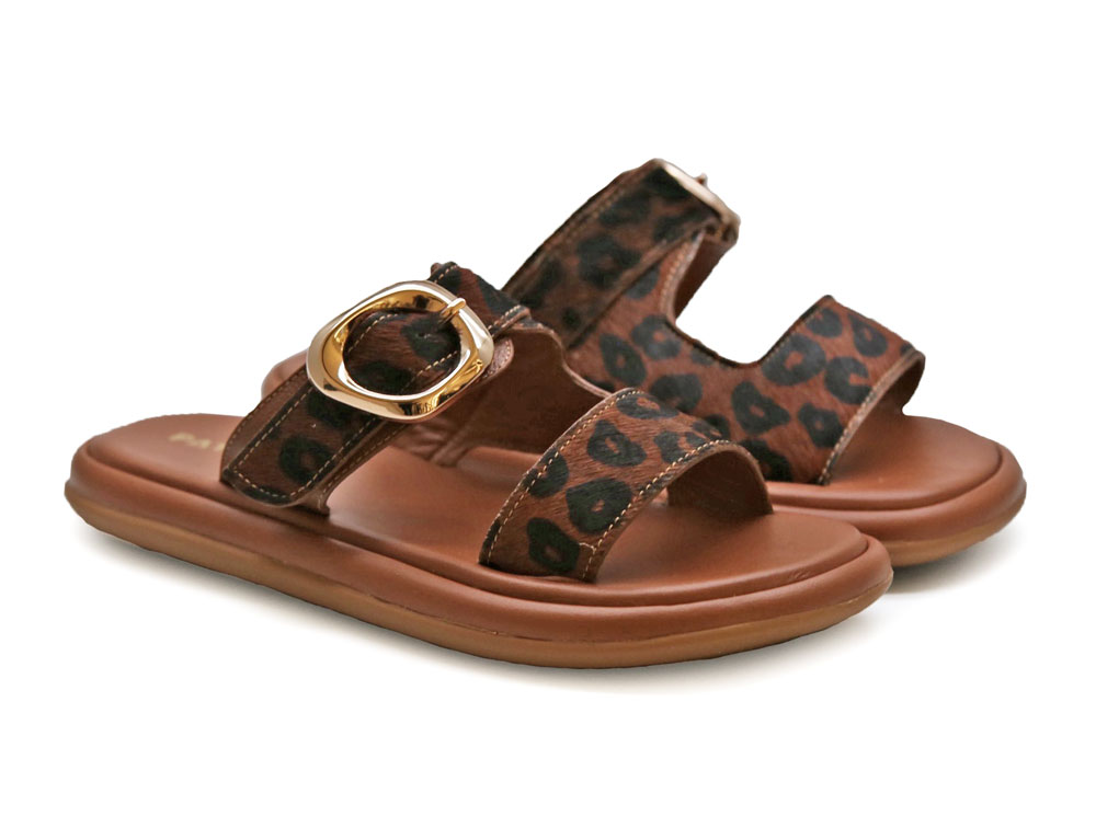 Sandalias plana con diseño animal print en cuero natural. Perfectas para dar un toque moderno y atrevido a cualquier look casual. Posee doble correa con herraje dorado que aporta elegancia mientras que la suela garantiza comodidad. Hechas por manos colombianas |