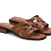 Sandalia plana en cuero, diseñada con un estilo elegante y moderno. Su capellada presenta un entrelazado de tiras anchas que se cruzan, brindando un look sofisticado y versátil para diferentes ocasiones. Con plantilla acolchada para mayor comodidad y suela en acabado antideslizante que garantiza estabilidad al caminar.