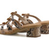 Sandalia en cuero, con diseño en folia y detalles de moños con apliques dorados, que aportan un toque femenino. Su tacón bajo y suela acolchonada brindan estabilidad y comodidad durante todo el día. Hechas por manos colombianas |
