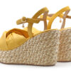 Sandalia color moztaza de cuero y plataforma de yute, con capellada cruzada para mayor comodidad. herraje cromado y un diseño único. posee una altura de 7.5cm . Estas sandalias son perfectas para tu días casuales. Hechas por manos colombianas. |