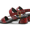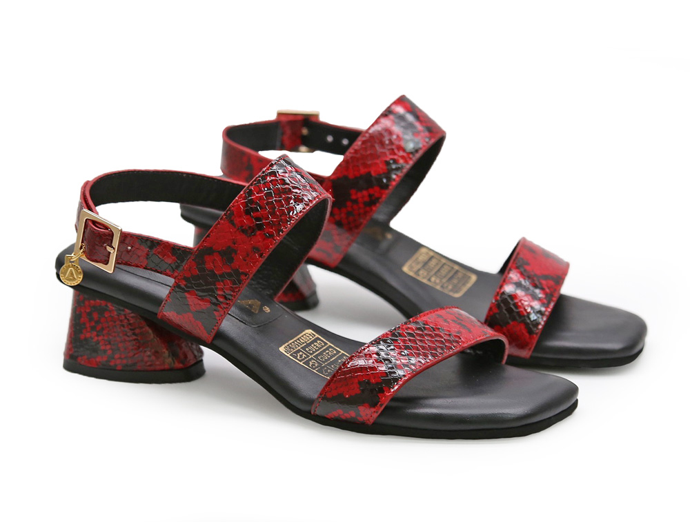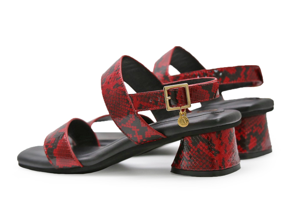 Sandalia en cuero charol con diseño en folia. Cuenta con una horma cuadrada y tacón bajo forrado, lo que brinda comodidad y estabilidad al caminar. Hechas por manos colombianas |