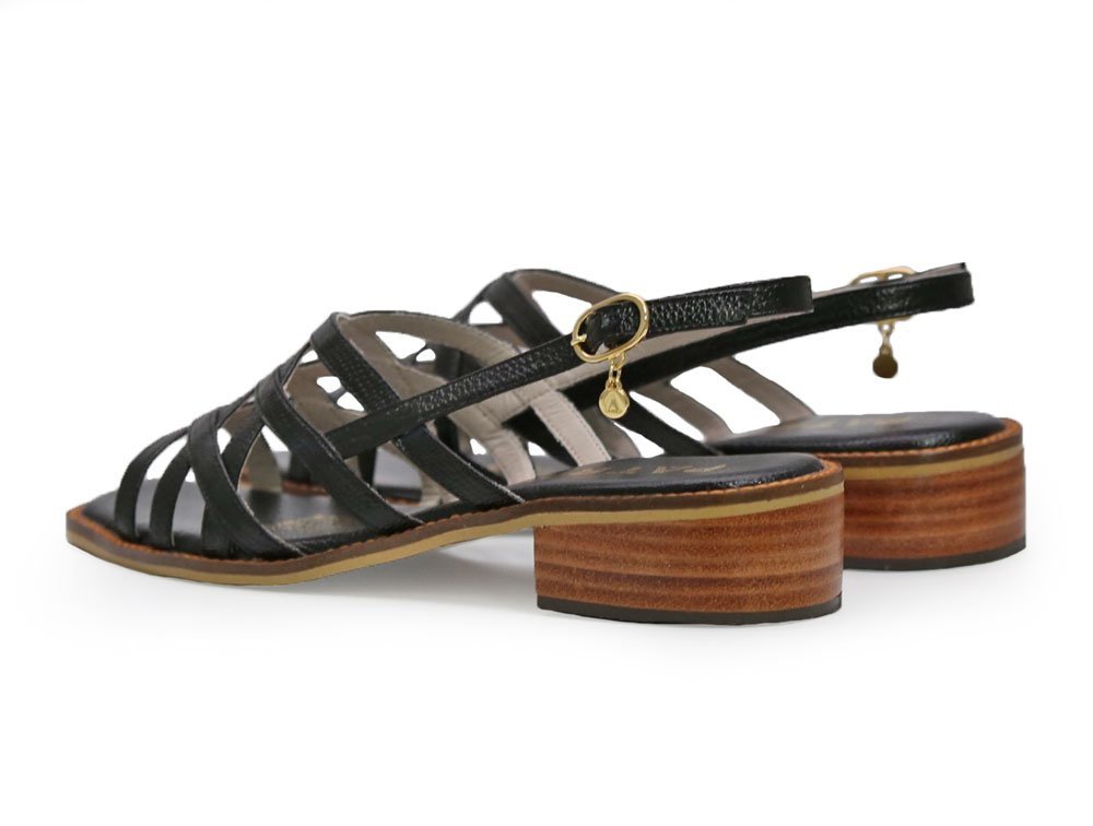 Sandalia en cuero color negro, con diseño de tiras entrecruzadas que brindan un estilo elegante y moderno. Cuenta con correa ajustable y tacon forrado en vira. Perfecta para uso diario o para complementar looks casuales y formales con un toque de distinción artesanal. Hechas por manos colombianas |