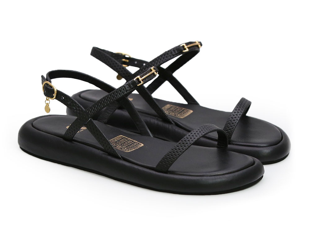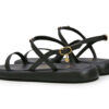 Se destacan por su plantilla acolchada. Cuenta con tiras delgadas cruzadas que brindan un ajuste firme y cómodo, acompañadas de herrajes metálicos en tono dorado que añaden un toque de elegancia.