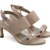 Sandalia nude en cuero grabado. Cuenta con capellada ancha para mayor ajuste, y unos taches que agregan un toque de estilo. Estas sandalias son ideales para ocasiones especiales o para quienes buscan altura y estilización en su look.. Hechas 100% por manos colombianas. |