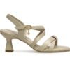 Sandalias elaboradas en cuero dorado.. Su diseño minimalista con tira delantera ancha y correa ajustable al tobillo brinda comodidad y seguridad al caminar. El tacón bajo de 3.5cm proporciona estabilidad sin perder estilo, perfecto para ocasiones formales o casuales. Hechas por manos colombianas |
