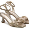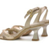 Sandalia en cuero con acabado en folia oro. Su diseño cuenta con tiras cruzadas en la parte frontal que brindan un ajuste cómodo, junto con su correa al tobillo que  ofrece seguridad y un toque delicado. Perfectas para ocasiones formales o para darle protagonismo a cualquier atuendo.