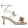 Sandalia elaboradas  en cuero. Destacan por sus delicadas  mariposas en la parte frontal y lateral, que aportan un toque femenino y distinguido. Las finas tiras ajustables al tobillo brindan seguridad y un ajuste personalizado. Estas sandalias son perfectas para ocasiones especiales, eventos elegantes o cenas.