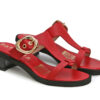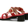 Sandalias en cuero color rojo. Destacan por su diseño elegante y versátil. Cuentan con una capellada en forma de “T” y una hebilla metálica dorada que aporta un toque sofisticado. Su plantilla acolchada garantiza comodidad,y su tacón de bloque en tono oscuro ofrece estabilidad al caminar. Hechas por manos colombianas |
