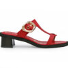 Sandalias en cuero color rojo. Destacan por su diseño elegante y versátil. Cuentan con una capellada en forma de “T” y una hebilla metálica dorada que aporta un toque sofisticado. Su plantilla acolchada garantiza comodidad,y su tacón de bloque en tono oscuro ofrece estabilidad al caminar. Hechas por manos colombianas |