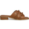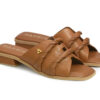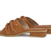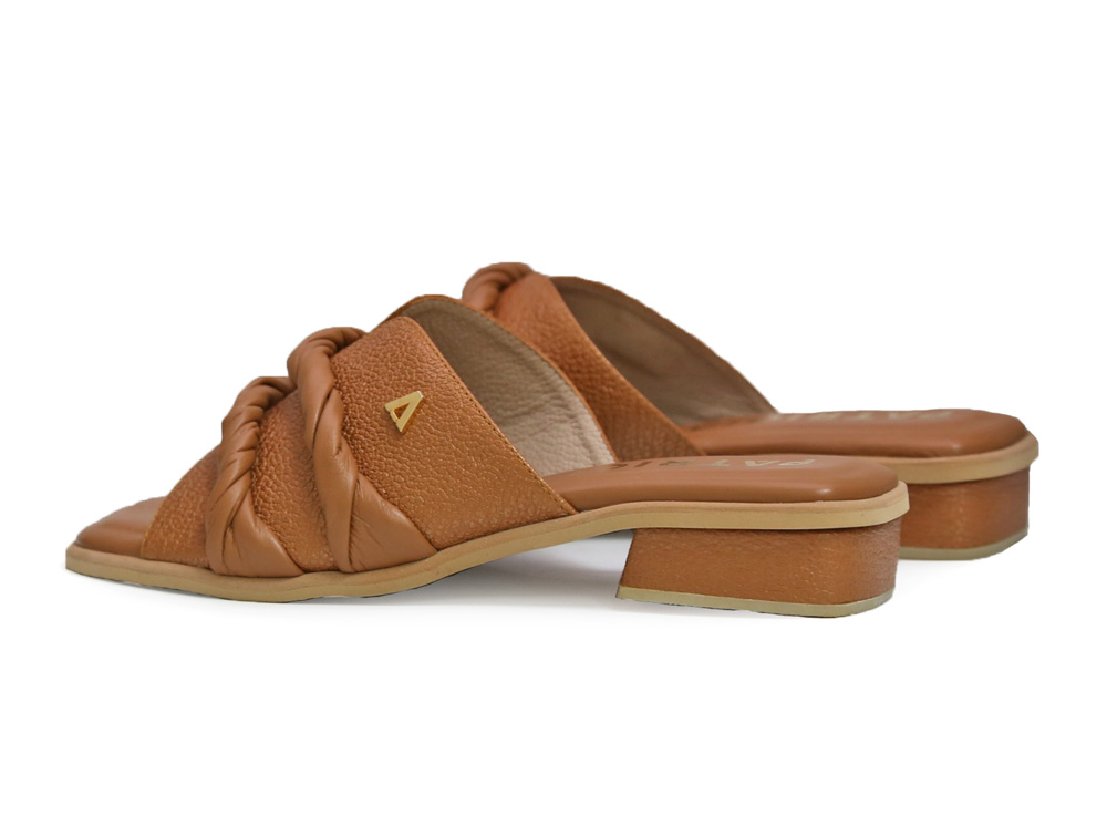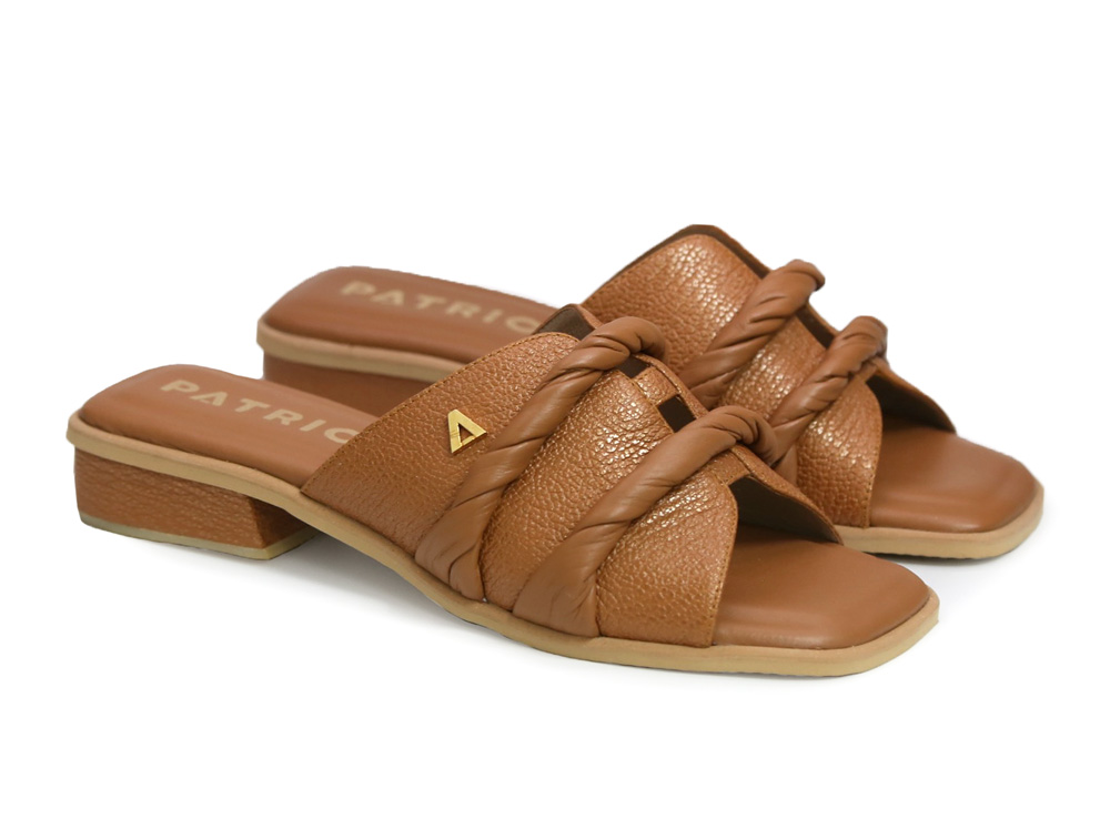 Sandalia en cuero con tiras cruzadas que incluyen detalles trenzados, lo cual aporta un toque sofisticado. La plantilla acolchada garantiza una pisada suave y confortable.
