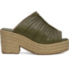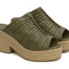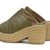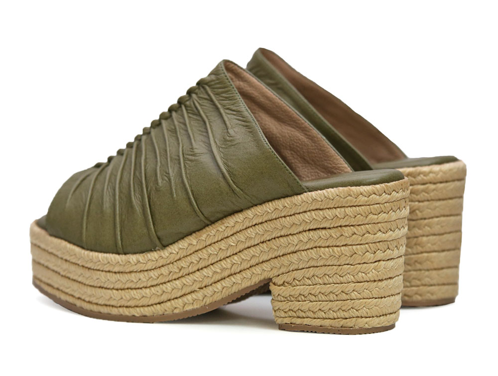 Sandalias de plataforma están elaboradas en cuero color verde oliva, con un diseño moderno y sofisticado. La capellada presenta un efecto arrugado que aporta textura y estilo. incorpora . La suela está elaborada en yute trenzado, aportando un toque natural, ideal para looks frescos y casuales. Hechas por manos colombianas. |