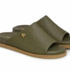 Sandalia plana en cuero grabado. Cuenta con capellada ancha que  garantiza un ajuste comodo y seguro. No solo realza su estilo, sino que también añade un aire distintivo y elegante. La suela es acolchada y ergonómica, brindando comodidad para uso prolongado.