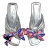 Sandalia en cuero metalizado de suave textura, cuenta con un diseño único de moño coquett en capellada, para mayor comodidad posee un tacón de 3.5cm hecho en madera.Esta sandalia ofrece un toque de altura sutíl,perfecta para tu días casuales. |