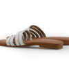 Sandalia plana en cuero blanca, con cuatro tiras en su parte frontal, para mayor seguridad. Suaves y comodas para usarlas en tus dias casuales o de playa. Hecho por manos colombianas. |