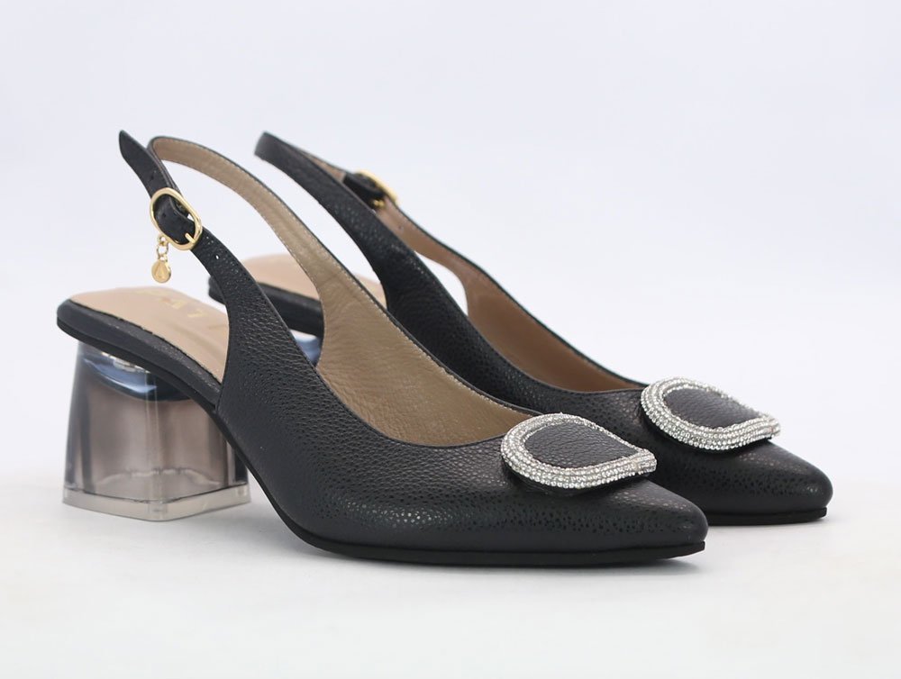 zapatilla destalonada tacon en acrilico de 7.5 cm elegancia para tu dia a dia