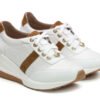 Tenis en cuero blanco. Su diseño combina detalles en folia y apliques dorados que realzan su elegancia. Suela de plataforma que brinda altura adicional y comodidad en cada paso. Ideales para quienes buscan un calzado versátil y con estilo Elaborados por manos Colombianas. |