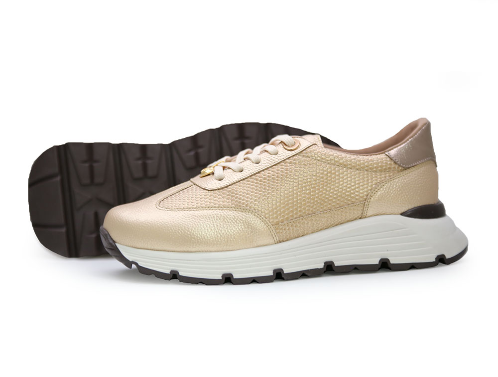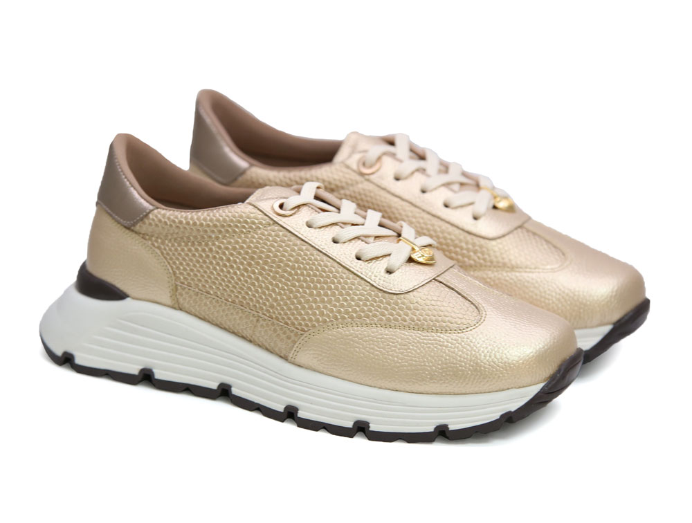 Tenis dorado elaborado en cuero, con detalles grabados. suela elevada que proporciona un efecto de mayor estatura y confort en cada paso Cordones ajustables para mayor seguridad. Elaborados por manos Colombianas. |